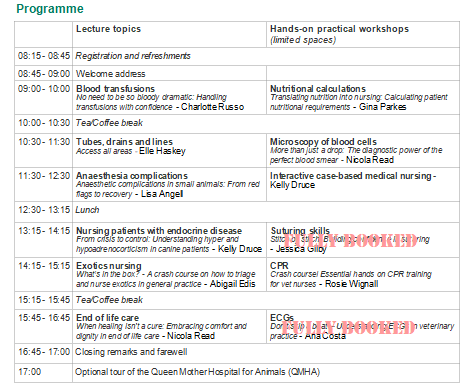 Presented by the RVC CPD Unit and the RVC School of Veterinary Nursing.